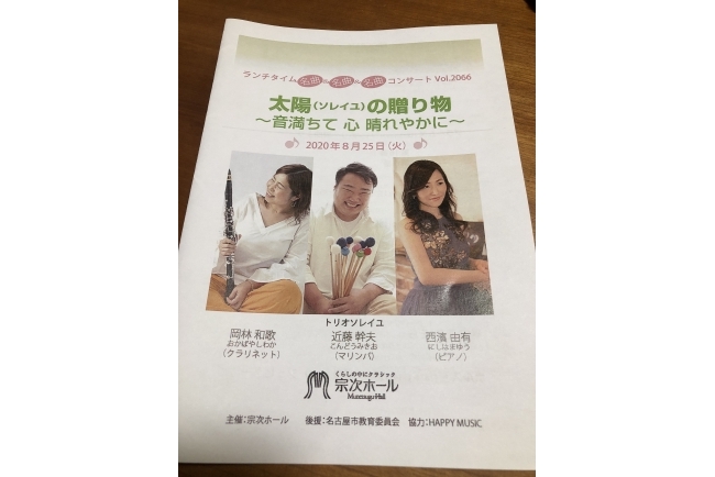 トリオソレイユのみんな、感染予防対策を完璧にしてくださった宗次ホールのスタッフのみなさま、素敵な時間をありがとうございました。