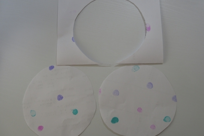 次にA4の紙を2つ折りにし、適当に丸く切ります。