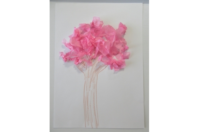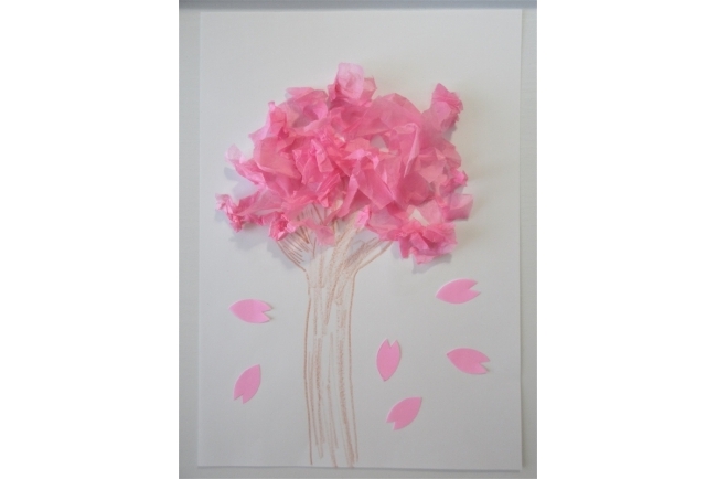 ⑤桜の花が咲く部分にぐるぐるとノリづけをし、