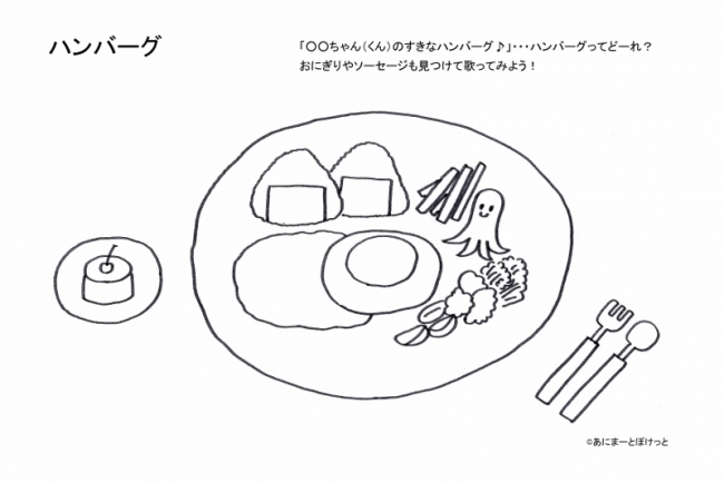 あそぼ!2の「ハンバーグ」の楽曲で遊べるワークシート